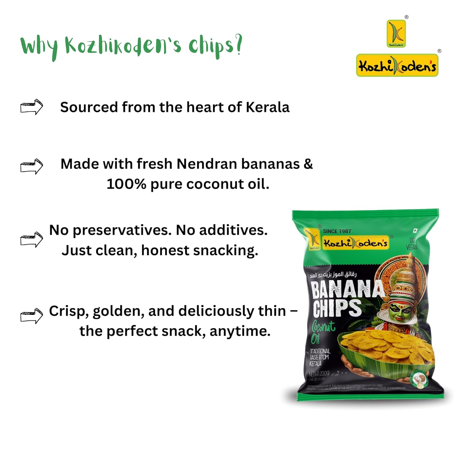 Moms Goodness Banana Chips | Made in 100% Pure Coconut Oil | 400g (2 x 200g Packs) | Crispy Kerala Snack | No Artificial Flavors, Colors, or Preservatives | Vegan & Healthy | Thin Nendran Wafers